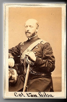 Auf dieser Seite möchte ich über einige Vorfahren der Ropperhäuser Linie berichten. Einer dieser Persönlichkeiten war Leopold Bogeslav Carl Hans von Gilsa. Geboren am 15.08.1824 und getauft am 14.09.1824 in Erfurt. Leopold hat seine Ausbildung im Kadettenkorps erhalten und war als 17-jähriger in das Regiment seines Vater eingestellt worden. Während seiner gesamten Zeit seiner Zugehörigkeit zum Thüringischen Infanterie Regiment 31 stand er in Erfurt. Wie sein Stiefvater Carl Ludwig Freiherr von Schweinberg Generalmajor berichtete, waren seine Jugendstreiche sehr eklatant, sodass ihm nahegelegt wurde, den Abschied zu nehmen. Das war im Februar 1850. Als ehemaliger Preußischer Offizier beteiligte er sich ab Juli 1850 bis 31.03.1851 am Freiheitskampf der Patrioten in Schleswig Holstein gegen die Dänen. Nach Scheitern des Kampfes der Patrioten war er zur Flucht nach Amerika gezwungen. Der Abschied von der Heimat und die Trennung von der Familie scheint für ihn nicht ohne Bitterkeit gewesen zu sein. Nur von seinem Bruder Julius, der beim Militär in Hamburg lag, hat er Abschied genommen. Dies erzählte Leopold später seiner Frau. In Amerika, New York, angekommen ging es ihm sehr schlecht. Für längere Zeit musste Leopold seinen Lebensunterhalt damit verdienen, indem er in Polkakneipen, Saloons und Bars als Sänger und Klavierspieler auftrat. 1861 wurde er Oberst des 41. New Yorker (De Kalb) Regiments, welches ausschließlich aus altgedienten deutschen Soldaten bestand. Schreckensmarsch der deutschen Division und Schlacht bei Cross Keys, Va., wo sich v. Gilsa sehr auszeichnete und schwer verwundet wurde. Er kämpfte dann unter Sigel im Popeschen Feldzuge von 1862, war Sigels Stabschef und zeichnete sich als solcher bei Bull Run II aus. Er erhielt im Frühling 1863 den Befehl über die I. Brigade der Division Devens im II. Korps und hatte bei Chancellorsville den ersten Ansturm der gesamten jacksonschen Armee aufzufangen. Hat sich dabei vortrefflich gehalten und der vielfachen Übermacht wenigstens eine zeitlang widerstanden. Bei Gettysburg erlitt seine Brigade in den Kämpfen am 1. Juli starke Verluste und bei dem Sturme der Konföderierten auf den Friedhofshügel am Abende des 2. Juli hatte diese wieder recht ungünstig postierte Brigade, wie bei Chancellorsville, den ersten Anprall des Feindes aufzufangen. Sie wurde von der Übermacht geworfen, zog sich auf das Hauptkorps zurück und hat dann wacker weitergekämpft. v. Gilsa wurde, Herbst 1863, mit seiner Brigade nach den Carolinas entsendet und kämpfte neben Schimmelfennig bei der Belagerung von Charleston. Das 41. Regiment war das letzte, welches im Jahre 1864 ausgemustert wurde. v. Gilsa ging mit den Resten seines alten Regiments nach New York zurück, wurde dort gebührend gefeiert und organisierte im Winter 1864 bis 1865 ein neues Regiment, welches jedoch nicht mehr zum Schlagen kam. Er war ein tapferer und umsichtiger Offizier, und es ist sehr zu bedauern, daß er nicht zum General befördert wurde. Die Prinzessin Salm-Salm behauptet in ihren Memoiren, sie habe v. Gilsas Beförderung verhindert (Felix v. Salm-Salm war eine zeitlang Untergebener v. Gilsas, und unter den beiden herrschte Feindschaft). Die Prinzessin hat manche Kulisse geschoben und unmöglich ist es durchaus nicht, daß sie es bewirkte, daß dieser verdienstvolle deutsche Offizier mit demselben Range (nach vierjährigen Kämpfen) verabschiedet wurde, mit welchem er in das Heer eingetreten war. |